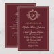 Elegant vintage crest monogram dark red burgundy and ivory buttercream classic formal traditional framed wedding invitation with QR code to website for guest information details and RSVP, featuring a classy hand lettered calligraphy script. +++++++++++ Suitable for timeless stylish old money themed weddings.