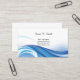 Diese Visitenkarte wird in einem klassischen Weiß mit einem abstrakten Kunstdruck mit blauer Welle dargestellt.