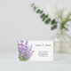 Diese Visitenkarte wird in einem klassischen Weiß mit einem Kunstdruck eines lila Lavendels gezeigt. Passen Sie diese Karte an, ändern Sie den Text in Ihren Text. Lizenziertes Bild