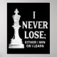 Classic Chess Design, I Never Lose; I Either Win Poster