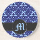 Classic Damask Blue (Monogramm) Getränkeuntersetzer