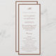 Die reichen Brauntöne, die nahtlos mit der weichen Eleganz von ecru vermischt sind, schaffen ein zeitloses und raffiniertes Design. Dieses sorgfältig gestaltete Hochzeitsprogramm ist ein perfekter Anhaltspunkt für Ihre Gäste und bietet einen Einblick in die sich entfaltenden Momente Ihres besonderen Tages. Das klassische und elegante Design Set den Ton für eine Feier, die Raffinesse und Charme ausstrahlt.