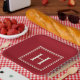 Dieses schlichte und elegante Design mit klassischem Stil besticht durch eine doppelte Grenze in einem geschmackvollen, neutralen Elfenbeinbeige auf einem roten Hintergrund. Der Rand ist perfekt symmetrisch und bildet die gesamte Serviette mit zwei parallelen Linien, die entlang ihres Umkreises verlaufen. Eine Textvorlage ist in der Mitte des Designs enthalten, um mit Ihrer Monogramm-Initiale zu personalisieren. Diese Teller sind großartig geeignet, um Ferien zu verbringen oder jeden Tag unterhaltsam zu sein, und bieten Ihnen die Möglichkeit, sich für Ihren Komfort zur Verfügung zu stellen. Erhältlich in 2 Größen: hier im 9-Zoll-Durchmesser, auch in einer kleineren Größe von 7 Zoll erhältlich.