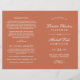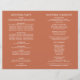 Formale Terracotta orange Hochzeitsfeier Programm Design bietet schöne Typografie, die eine traditionelle geblüht Kalligraphie Skript mit klassischen Blockschrift kombiniert. Enthält einen dekorativen Scrolldesign-Akzent. Der benutzerdefinierte Text kann für Ihren Hochzeitstag vollständig personalisiert werden. Beachten Sie, dass diese gefalteten Blechprogramme flach ankommen und eine mittlere Falte erfordern. Bitte kaufen Sie unsere Classic Elegant Terracotta Orange Wedding Collection für die Koordination von Entwürfen.
