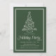 Die Gäste können die Saison mit dieser Feier-Einladung feiern, die sich durch einen tiefen, waldgrünen Hintergrund, einen von Hand gezeichnet Weihnachtsbaum und eine koordinierende Doppelrahm-Grenze auszeichnet. "Holiday Party" erscheint in der passenden Creme-Schrift, die ein raffiniertes und traditionelles Aussehen schafft. Die farbenfrohe waldgrüne und cremefarbene Palette verleiht zeitlose Urlaubeleganz, die sich perfekt für Weihnachtsessen, Familienfeiern und Firmenfeiern oder Geschäftsfeiern eignet.