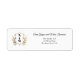 Elevate your wedding stationery with this sophisticated address label designed for couples seeking a timeless aesthetic. The artwork displays a vintage shield crest, ornate botanical filigree, and a printed faux gold foil effect on a crisp background. Easy to customize with your details.
