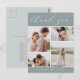 Elegante Hochzeitsdanken sind die Postkarten mit vier Fotos, die auf einem staubigen, schlängelgrünen Hintergrund in einer Gitterkollektion angeordnet sind. "Danke" erscheint oben in der schicken Kalligraphie-Schrift, mit Ihren Namen unten in klassischer Blockschrift. Fügen Sie dem farbkoordinierten Rücken eine persönliche Nachricht und Signatur hinzu.