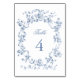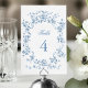 Classic French Blue Flowers & Ribbons Wedding Tischnummer