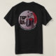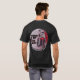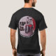 Our classic logo in badge position on the front of the shirt and full-size on the back, both with the words "a humor-and-horror actual-play audio drama" curving underneath the logo.