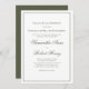 Feiern Sie Ihren besonderen Tag mit dieser eleganten, grünen Hochzeitseinladung. Freuen Sie sich auf ein zeitloses formales Kalligrafieschrift und ein klassisches Monogramm-Motiv. Der schlichte minimalistische Stil und die saubere Typografie werden mit einer klassischen traditionellen Grenze gepaart, die ein perfektes Gleichgewicht von Tradition und Moderne bietet. Diese Einladung wurde für formelle Formulierungen konzipiert und strahlt eine raffinierte Eleganz und eine Touch von sanften romantischen Charme aus. Das einfache und einfache Design macht es zu einer idealen Wahl für Paare, die eine schlichte Schönheit suchen.