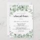 Dieses klassisch grüne Eukalyptus Probe Dinner lädt zu einem rustikalen Event ein. Das Design bietet schöne Aquarellgrün Eukalyptus-Blätter.