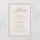 These elegant, neutral palette wedding welcome programs feature a soft, mocha taupe border and a creamy ivory background. There is a mix of classic text and modern calligraphy for a classy and minimalist design perfect for your timeless, formal wedding.