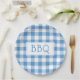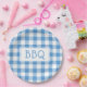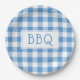 Bereiten Sie sich auf Ihr Grill-Party mit Tellern in hellblauen, weißen und babyblauen Quadraten in einem klassischen Büffel vor, kariert mit den Buchstaben GRILLEN in einem weißen Rechteck in der Mitte. Um das Design Light Blue und White Gingham Muster auf anderen Gegenständen zu sehen, klicken Sie auf den Link "Rocklawn Arts". Digitales Bild. Copyright ©Claire E. Skinner. Alle Rechte vorbehalten.
