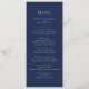 Dieses klassische Marineblau | Silber Hochzeitsmenü ist ideal für eine einfache moderne romantische und elegante Hochzeit. Die dunkelmarineblaue Farbpalette und die minimale Vintage Typografie verleihen ihr eine elegante formale Touch. Das Design ist flexibel und eignet sich perfekt für einen zeitgenössischen Abend, Frühjahr, Herbst, Sommer oder Winterhochzeit. Behalt es so, wie es ist, oder wähle es aus, um es mit Kunstwerken oder Grafiken deiner Wahl zu personalisieren.