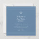 A classic yet modern square baptism invitation in deep blue, featuring subtle top and bottom stripes, a hand-painted shell with a cross, and a soft script font for an elegant, meaningful look.