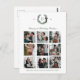 Freuen Sie sich auf feierlichen Beifall mit unserer Classic Monogram Wreath Wappen Holiday Postcard. Diese vereinfachte Option bietet eine Öko-freundliche, preisbewusste Möglichkeit, Grüße zu versenden, ohne dabei auf Eleganz zu verzichten. Mit neun wertvollen Fotos und einem individuell gestaltbaren Monogramm-Wappen, das von einem Urlaubskrez mit schwarzem Bogen gerahmt ist, verbindet diese Postkarte persönlichen Charme mit zeitlosem Design. Auf der Rückseite der Postkarte finden Sie Platz für Ihren Familiennamen, Ihre kurze Nachricht und Ihre Empfängeradresse. So können Sie bequem warme Urlaubswünsche versenden. Diese Postkarten sind so konzipiert, dass sie wunderbar durch die Post reisen und gleichzeitig den Urlaubsgeist Ihrer Familie demonstrieren. Dieses Design ist perfekt für Familien, die mühelos eine Möglichkeit zum Versenden von Updates gewollt haben. Es koordiniert die gesamte Classic Monogram Wreath Wappen Holiday Collection mit Rücksendeadressen-Aufklebern, Briefmarke und Geschenkaufklebern.