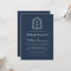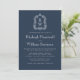 Classic Navy Blue Monogram Crest QR Code Wedding Einladung