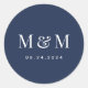 Classic Navy Blue Monogram Typography Wedding Runder Aufkleber