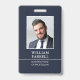 Create your own professional ID badge. This editable template features a sleek, minimalist aesthetic and classic typography. Upload your profile photo and personalize the text with your name, company, job title, and contact details. This custom badge is suitable for workplace identification, customer-facing roles, security, networking, conferences, and any role requiring visible identification. It offers fully customizable text to fit your business brand and is ideal for a wide range of work settings, including corporate office, executive roles, business consultants, legal professions, store employees, retail, hospitality, small businesses, and many more. No minimum order. Printing colors: blue-black and white, or customize the color with the design tool. Explore the online collection for matching printed designs!