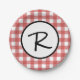 Bieten Sie Ihren Gästen ein Picknick-Party im Hinterhof mit diesen klassischen Tellern mit einem Rot-Weiß-Gingham-Karo mit Ihrem Monogramm oder Initial im lässigen Schriftart-Stil.