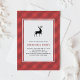 Classic Red Kariert mit Deer Christmas Party Einladung | Mit dieser individuellen Einladung laden Sie Familie und Freunde zu Ihrem Weihnachtsfest ein. Es zeichnet sich durch rotes kariertes Muster, Reh-Illustration und klassische Typografie aus. Personalisieren Sie Ihre persönlichen Daten, indem Sie Ihre eigenen Daten hinzufügen. Sie können die Rückseite durch Hinzufügen eines Fotos oder eines anderen Bildes anpassen.