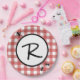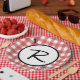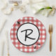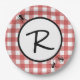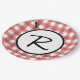 Bieten Sie Ihren Gästen des Picknick-Party im Hinterhof mit diesen klassischen Tellern, die Picknickameisen über einem Rot-Weiß-Gingham-Karo-Muster mit Ihrem Monogramm oder Initial in einem lässigen Schriftart-Stil.