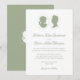 Klassisch und elegant, Bridgerton inspiriert, regency grün Cameo Hochzeitsdesign. Passen Sie Ihre Namen in einem eleganten Skript-Schriftart an und Ihre Hochzeitsinformationen in einem schicken Serif-Schriftart. Entworfen um unsere Classic Regency Green Cameo Wedding Collection zu ergänzen.