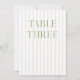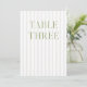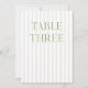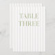 Ce numéro de table élégant présente un arrière - plan rayé beige doux avec une typographie de sauge verte raffinée et des accents de script subtils. Conçu pour les mariages de jardin, les réceptions raffinées et les célébrations de plein air intemporelles. Coordonnées avec la collection de Faire-part de mariage "Iris" — cliquez sur le lien de collection de cette page pour trouver des éléments correspondants tels que des menus, des invitations, des affiches, etc. Remarque : ce modèle n'est pas modifiable. Pour trouver d'autres numéros de table dans cette série, visitez la page de collection complète. ・ Des maquettes pour cette conception ont été créées à l'aide de l'IA Midtravel.
