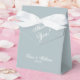 Klassische helle staubblaue Hochzeit Dankeschön an die Box. Vielen Dank mit Braut- und Bräutigamen und Datum in elegantem Schriftzeichen.