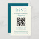 Classic Teal Blue Minimalist Wedding QR Code RSVP Karte