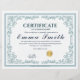Classic Teal Ornate Certificate of Achievement