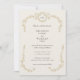 Elegant and timeless, this Victorian-inspired wedding invitation features an ornate antique gold floral frame with a classic French bow monogram at the top. Designed on a warm ivory textured background, it evokes vintage European charm with a refined modern touch. Perfect for formal, romantic, and traditional weddings, this luxurious design highlights your names and wedding details in elegant typography, while the back showcases a coordinating monogram bow motif for a polished, cohesive finish. Ideal for couples seeking a sophisticated heirloom-style wedding suite.