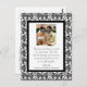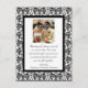 Ein elegantes Schwarz-Weiß-Damast-Design mit einem extravaganten Drehmotiv, um Ihr Hochzeitszittel zu gestalten. Senden Sie ein herzliches Dankeschön an Freunde und Familie.