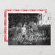 Frohe Weihnachts-Foto Postcard Script in weißer Schrift. zurück hat eine hübsche Blumengrenze. Schreibstil. Großes Foto. Glückliches, festliches Design. Es ist ein wunderbares Leben. Blume. Rot und Weiß. Blumenrahmen.