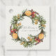 Minimalistische elegante Weihnachts-Winter-Kranz Baby Duwer Gevor Tag. Mit Aquarell-Kranz-Dekoration mit Orange, Zimt und Weihnachtsweih-Blume und personalisiert Monogram-Anfangsname, Backside-Funktion mit Muster. Passende Artikel in unserem Shop Urban Aglow Design.