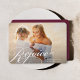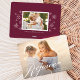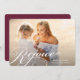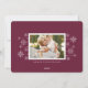 Carte photo de vacances simple et élégant dispose de votre photo horizontale ou paysagère préférée en fond saigné avec "Rejoice" superposé dans le script de calligraphie blanc traditionnel lettrage. Personnalisez avec vos noms et l'année à côté. Ajoutez ensuite une photo et un message personnel au dos si vous le souhaitez, sur un riche arrière - plan de prune bordeaux accentué de minuscules flocons de neige blancs.