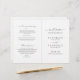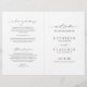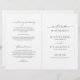 Programme de mariage plié de style classique (est déplié) avec un design simple et minimaliste noir et blanc avec une combinaison de polices serif traditionnelles et un script élégant avec votre date dans un grand format pour une touche moderne. Ce programme élégant est idéal pour un mariage formel.