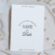 This classy, elegant save the date card in black and white features a minimal design with "save the date" styled with a mixture of classic text and elegant calligraphy script that lends a sophisticated, classy vibe. The design also features a place to add your photo that covers the entire back of the card.