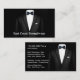 Cartes de visite Classy pour un service de Formalwear ou Tuxedo Rental conçu avec un costume pour homme sur l'avant et le dos dans ce design à deux côtés déjà organisé de sorte que vous remplacez notre texte par le vôtre.