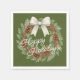 Diese wunderschön gestalteten Papierservietten zeigen elegante Aquarellbilder eines Kranzes mit weißem Bogen, Nadelkronen, grünen, heiligen Blätter, roten Beeren und Kiefernnadeln. Das elegante und dennoch rustikale Design spiegelt das Wesen der Dezember-Urlaubssaison wider und spricht alle an, die künstlerische Illustrationen schätzen. Die Serviette bietet eine individuelle Anpassung, die es Ihnen ermöglicht, sie mit Ihrem saisonalen Gruß zu personalisieren, was es zu einer wohlüberlegten Wahl macht, um den Feiertag zu verbringen.