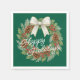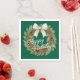 Diese wunderschön gestalteten Papierservietten zeigen elegante Aquarellbilder eines Kranzes mit weißem Bogen, Nadelkronen, grünen, heiligen Blätter, roten Beeren und Kiefernnadeln. Das elegante und dennoch rustikale Design spiegelt das Wesen der Dezember-Urlaubssaison wider und spricht alle an, die künstlerische Illustrationen schätzen. Die Serviette bietet eine individuelle Anpassung, die es Ihnen ermöglicht, sie mit Ihrem saisonalen Gruß zu personalisieren, was es zu einer wohlüberlegten Wahl macht, um den Feiertag zu verbringen.