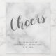 Eleganter weißer Marmor Hochzeitswein mit dem Titel 'Cheers' in grauem, modernem Script-Schriftart mit Namen und Datum in modernen Sans Serif Schriftart auf weißem Marmor Hintergrund.