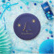 Elegantes Weihnachtsbild mit einem einfachen, sauberen, blauen Weihnachtsbaum mit goldenen Schneeflocken. Dieses Papier Kunstdesign ist modern, festlich, minimalistisch und beruflich.