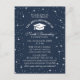 Conception de la Réunion scolaire, soit pour le lycée ou peut être modifiée pour le College Elegant, style classe. Arrière - plan bleu nuit avec étoiles. Élément casquette de diplôme et devis inclus. Veuillez personnaliser les détails de la célébration. Tout le texte est modifiable, ce qui peut être facilement modifié en invitation ou en faire-part pour un événement de remise de diplômes.