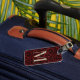 Klassische mit Monogramm Gepäckmarke mit dem Single, erste Monogramm grün auf einem blumengelben Untergrund. Fügen Sie Ihre Kontaktdaten auf der Rückseite hinzu.