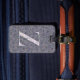 Klassische mit Monogramm Gepäckmarke mit dem Single, erste Monogramm grün auf einem blumengelben Untergrund. Fügen Sie Ihre Kontaktdaten auf der Rückseite hinzu.