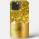 Glitzy elegante Ladys monogramm Smartphone Gehäuse für iPhone mit goldenem Imitat und metallisch glänzenden goldfarbenen Designelementen. Personalisieren Sie die mit Monogramm Namensinitialen online.