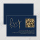 Classy Gold Script Navy Blue QR Code Wedding RSVP Karte