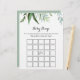 Dieses elegante, tropische Baby-Bingo-Duschgame eignet sich perfekt für eine moderne Babydusche. Die Einrichtung besteht aus grünen tropischen Blätter, die schön angeordnet sind.
