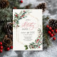 Dieses Design vereint Eleganz und saisonalen Beifall mit einem ausgeklügelten geometrischen Rahmen in Gold, der mit üppiger Aquarellgrüne und festlichen roten Beeren verziert ist. Die fette rote Schrift "Holiday Party" fügt eine beeindruckende, aber dennoch raffinierte Touch hinzu und macht diese Einladung ideal für Ansammlungen, Weihnachts-Party oder Winterveranstaltungen.